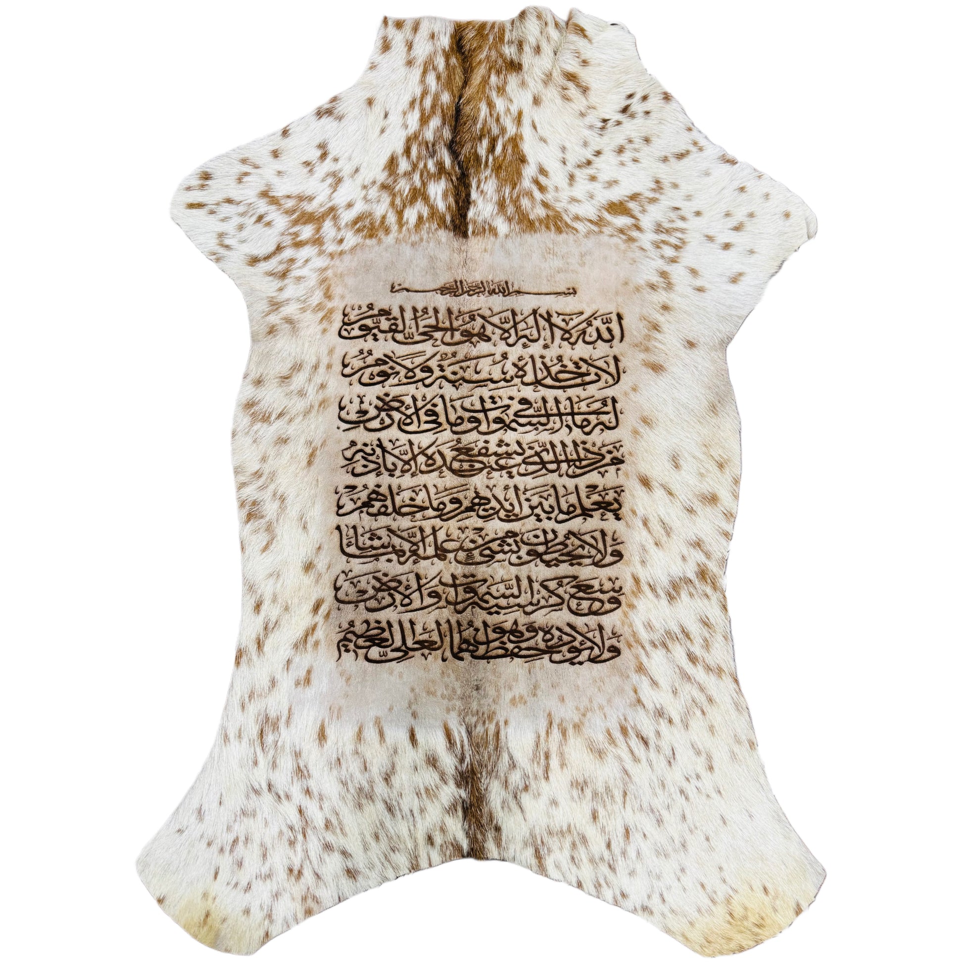 Invite divine protection into your home with the Islamic Calligraphy on Goat skin leather. Featuring sacred Quranic verses, this luxurious piece offers spiritual blessings and timeless elegance. Perfect for any space, it’s a meaningful addition to your decor.