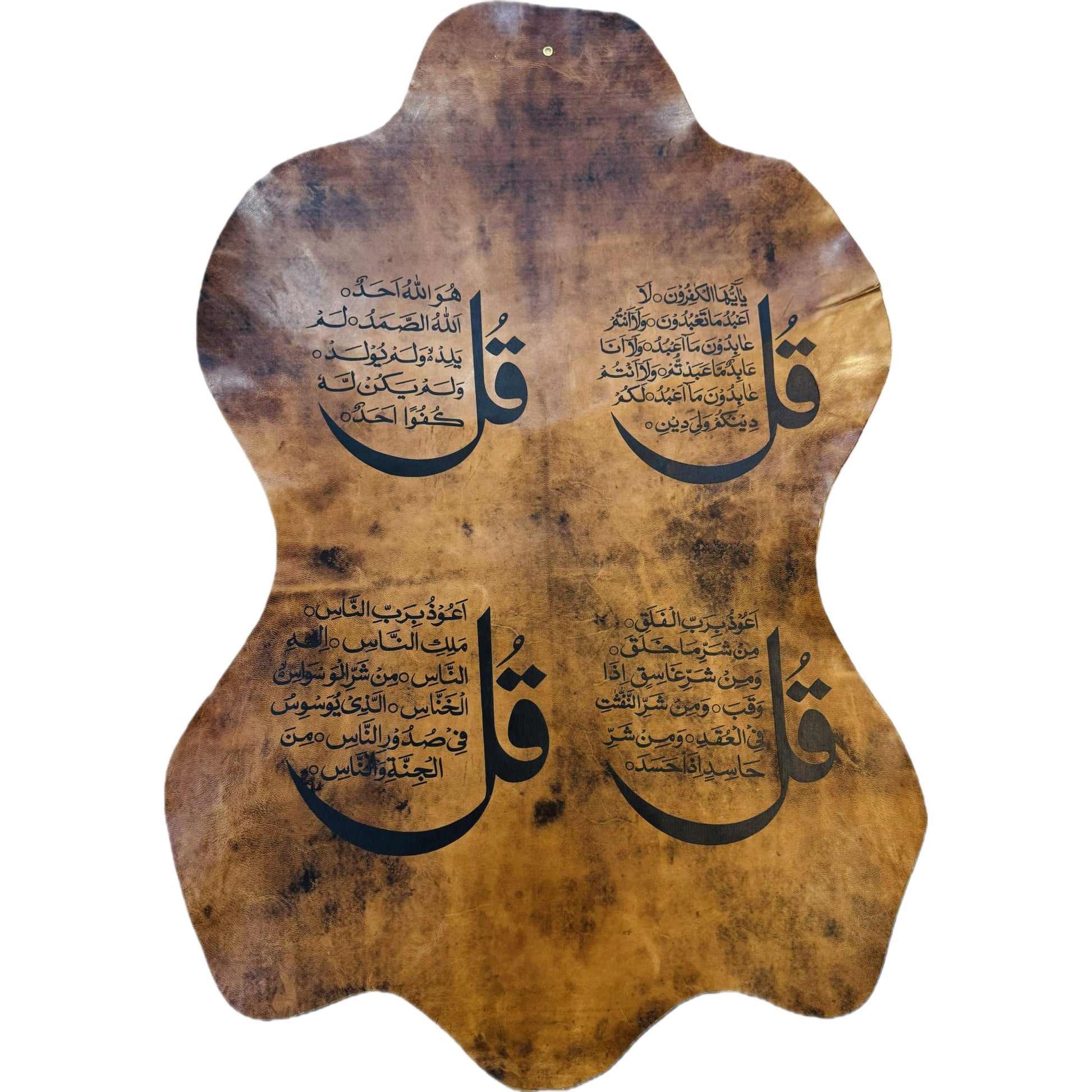 Invite divine protection into your home with the Islamic Calligraphy on handmade leather skins. Featuring sacred Quranic verses, this luxurious piece offers spiritual blessings and timeless elegance. Perfect for any space, it’s a meaningful addition to your decor.