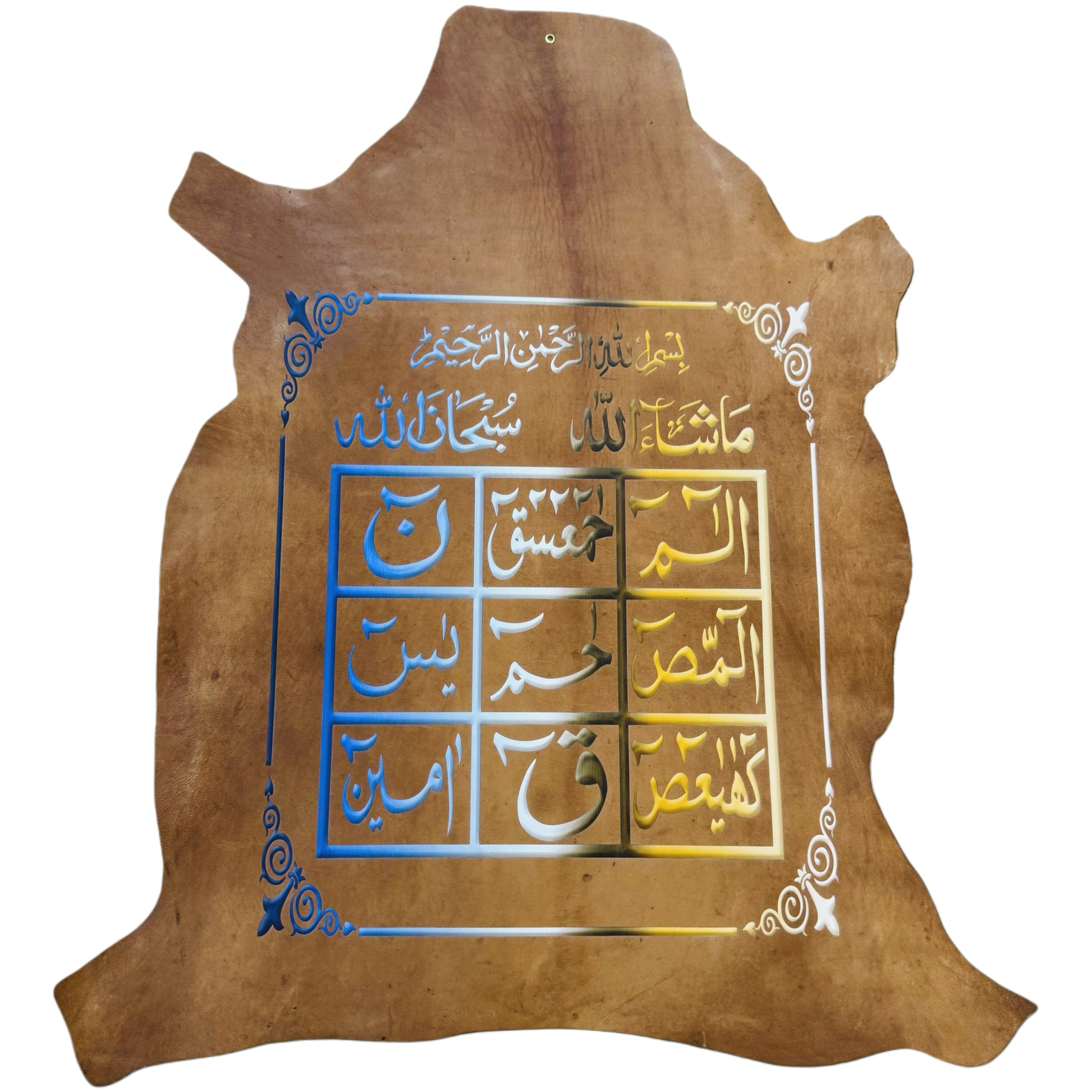 Invite divine protection into your home with the Islamic Calligraphy on handmade leather skins. Featuring sacred Quranic verses, this luxurious piece offers spiritual blessings and timeless elegance. Perfect for any space, it’s a meaningful addition to your decor.